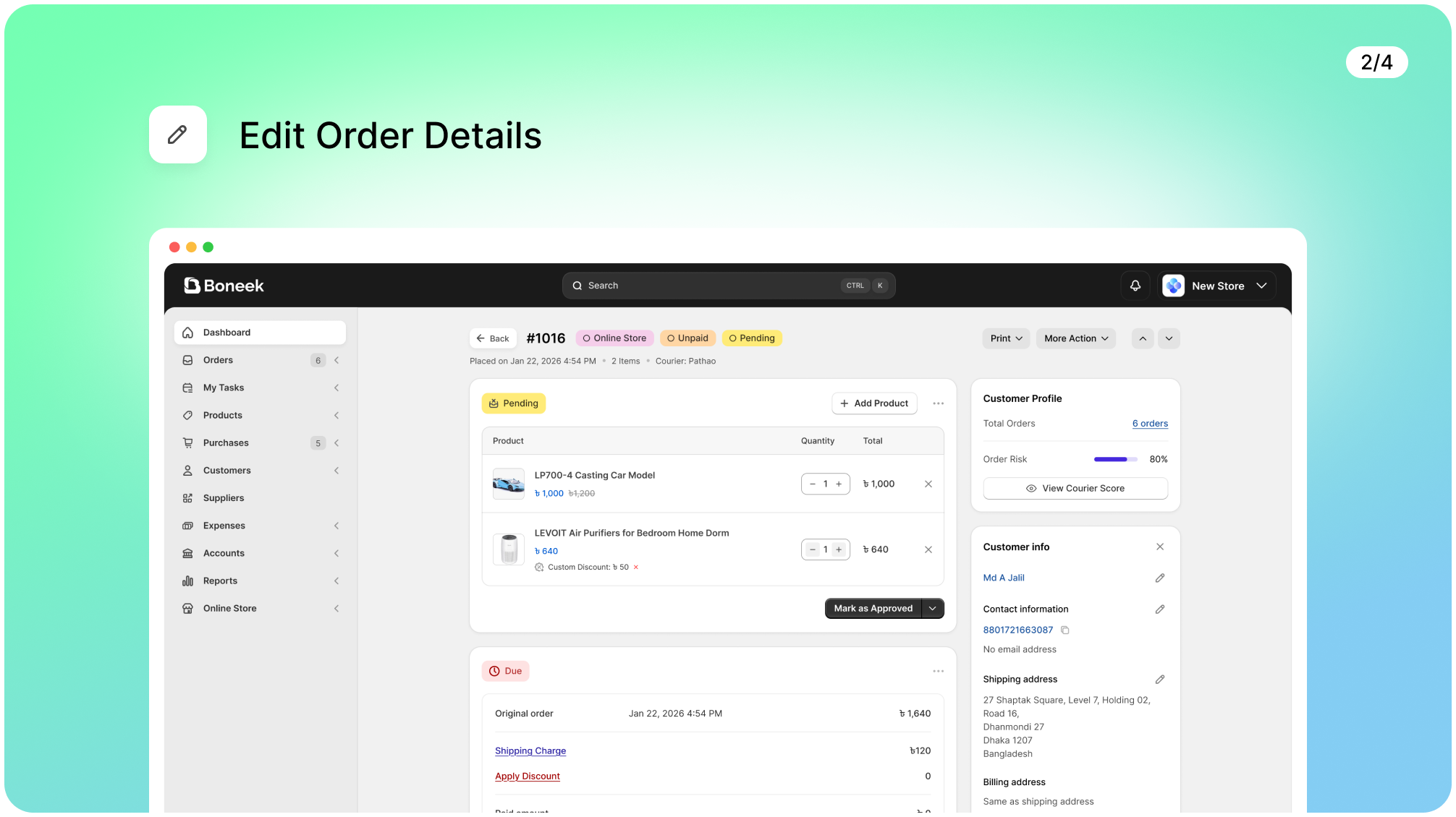 "Boneek-এর ইনকমপ্লিট অর্ডার ট্র্যাকিং ফিচারটা আমার ব্যবসার জন্য গেম চেঞ্জার।"